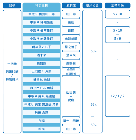 常見的十四代酒米則有:山田錦、愛山、雄町、赤磐雄町、