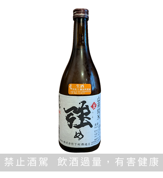 酒造於 2023 年攜手日本藝術家 不動貴雄,由其試飲後題下霸氣「強め」,象徵此款山廢生原酒的爆發力。酒精度近 20%,厚實飽滿、存在感強烈。 採用傳統 山廢製法,不添加人工乳酸菌,而以天然乳酸菌自然落菌,並以 30~40 天低溫長期發酵,造就山廢特有的深度與多層次感。繁複工法讓酵母充分浸入蒸米,呈現成熟濃醇的風味。 自推出以來便以強烈外觀及扎實酒體受到愛好者推崇。可直飲、加冰、加蘇打水、加水或以不同溫度品飲,一瓶享受多種風味變化。亦推薦搭配溫熱濃厚料理,更能突顯米旨味與厚度。