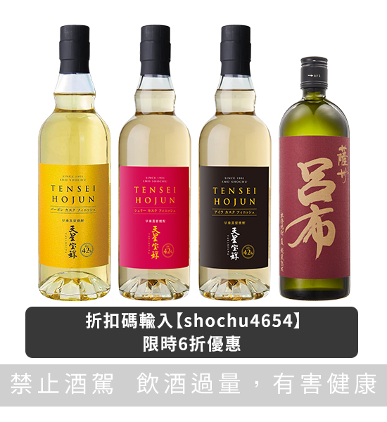 天星寶醇(TENSEI HOJUN)泥煤風格燒酎,選用新鮮的黃金千貫,經黑麴發酵,展現柔和的水果香氣,並以減壓蒸餾法提煉精華。隨後在艾雷島威士忌桶中熟成六個月,沉放兩年,融合泥煤、果乾和礦物質的獨特風味,保留其水果香氣,讓威士忌愛好者輕鬆享受過桶燒酎的風味。